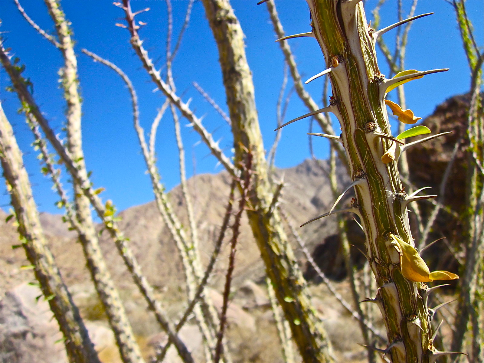 The trail starts off pretty open and expose to the sun. You will follow a well marked trail in the beginning with markers along the way. Sky at Anza Borrego is incredibly clear. The most fascinating thing about this park is definitely the bright blue sky that almost looks fake for those of us from the city. As the mountain on your left and right begin to grow taller and taller, you’re getting closer to the actual oasis.