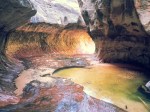 This is my favorite hike in Zion National Park. Well, from the ones that I’ve done so far. There is infinite hiking opportunity in that giant place. This awesome and fun trail will take you along the unmarked river which will eventually ends at the famous Subway. It’s a rock formation that create a subway like tunnel like the picture below.